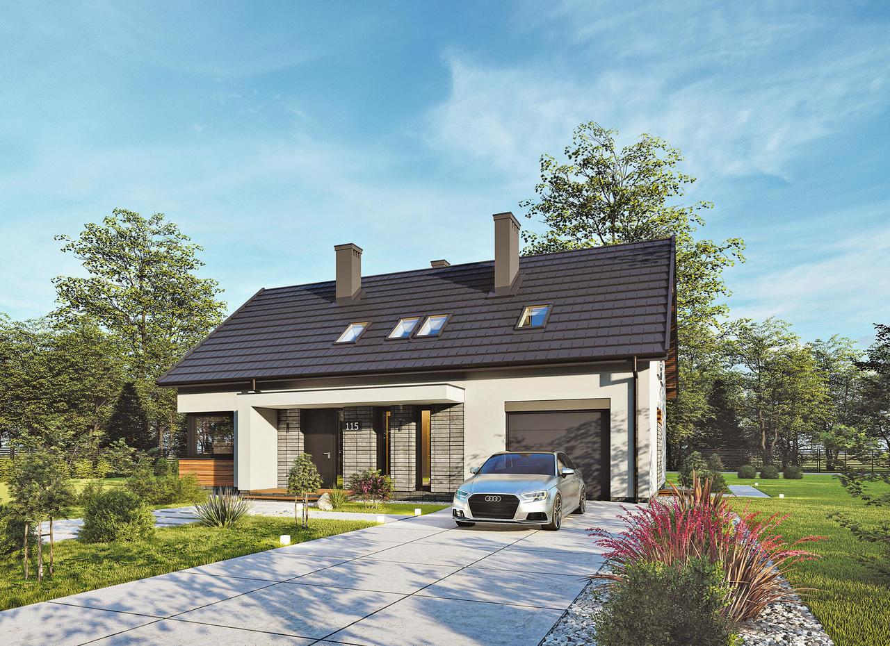 Projekt dla rodziny ma w sumie sześć6 wariantów różniących się powierzchniami użytkowymi i liczbą pokoi. Są wśród nich wersje bezgarażowe i z poddaszami do adaptacji.