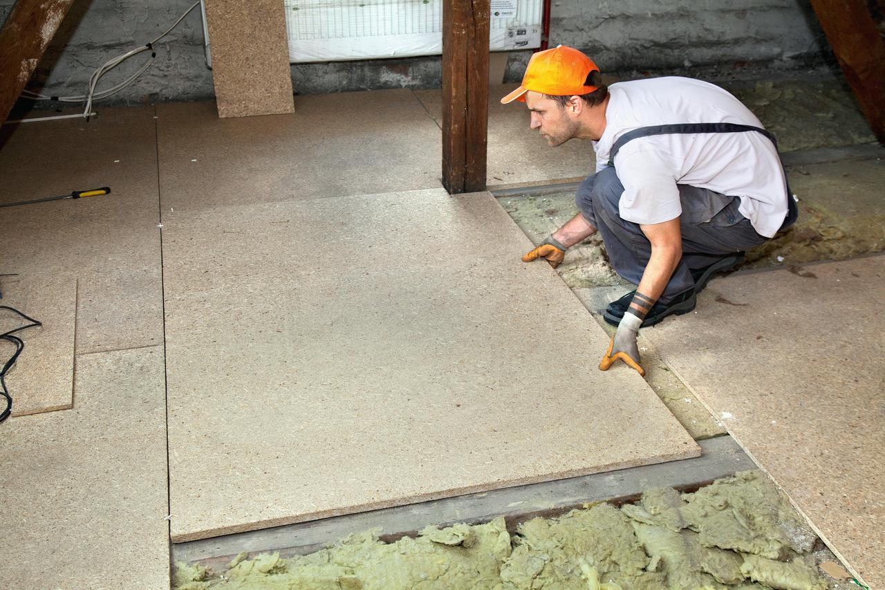 Na poszyciu stropu warto zrobić dodatkową izolację akustyczną. Wtedy prostopadle do belek przybija się legary wysokości około 6 cm, a między nimi umieszcza wełnę mineralną. Na tej konstrukcji można wykonać podłogę z desek lub też przybić płyty MPF, a na nich ułożyć posadzkę.
