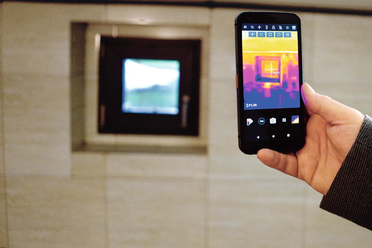 Jeszcze inna ekipa ociepliła budynek styropianem grafitowym o grubości 15 cm. W trakcie prac zostały zamontowane rolety we wnękach okiennych. Prowadnice zostały bardzo elegancko ukryte w warstwie styropianu. Fundamentów i ścian piwnic nie odkopywano. Na obrazie z kamery termowizyjnej widać, że ściany wokół okienek, a także naroża piwnicy są o wiele chłodniejsze niż pozostałe części budynku – wniosek z tego taki, że stuprocentowe ocieplanie domu wymaga także zaizolowania fundamentów.