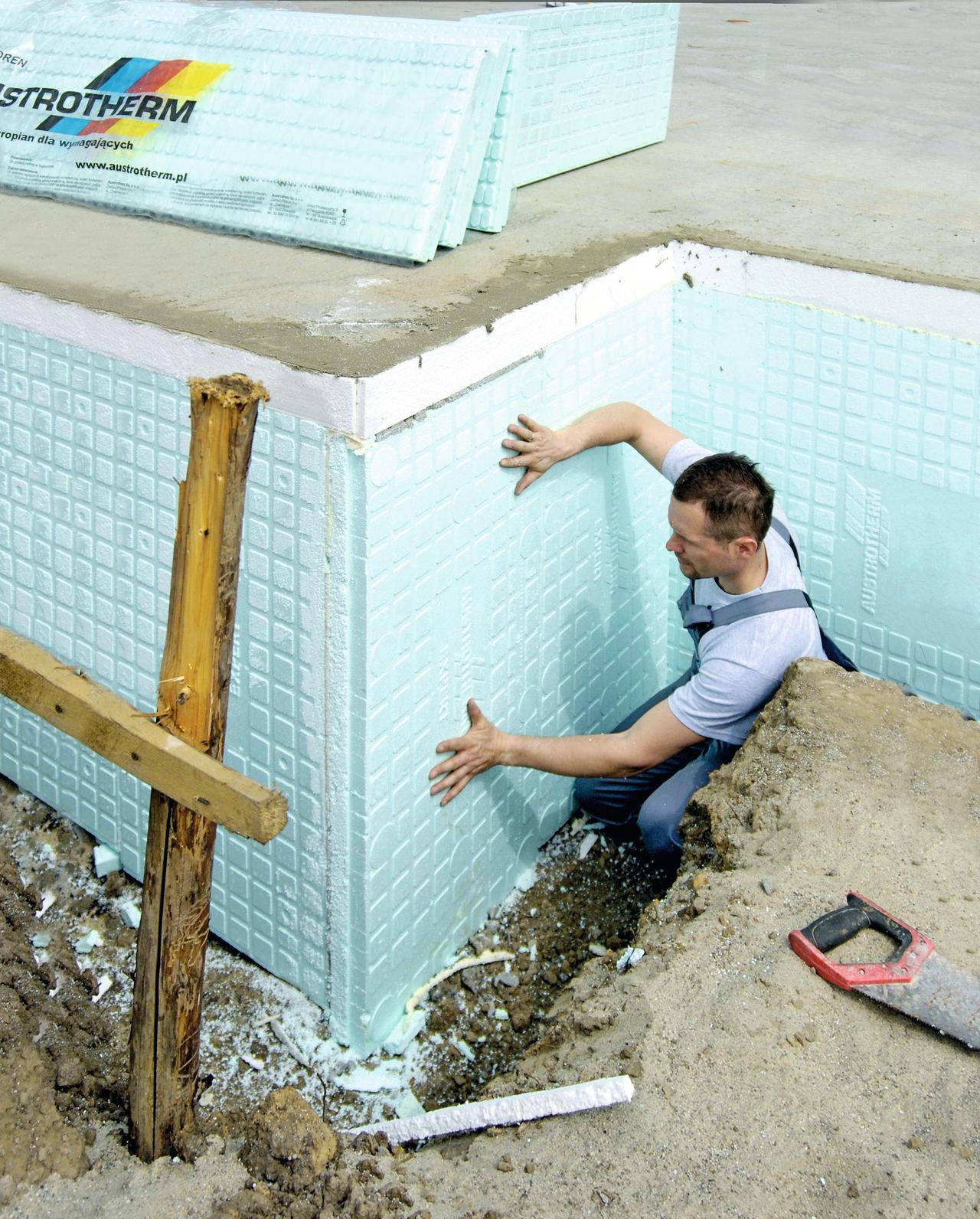 Ściany piwnic i fundamentów można zaizolować płytami ryflowanymi połączonymi z geowłókniną, co pomoże usprawnić spływanie wody. Znikoma nasiąkliwość i duża wytrzymałość na nacisk XPS-u to pożądane cechy termoizolacji układanej zarówno pod płytą fundamentową, jak i na dachu – płaskim oraz skośnym, jako izolacja nakrokwiowa.